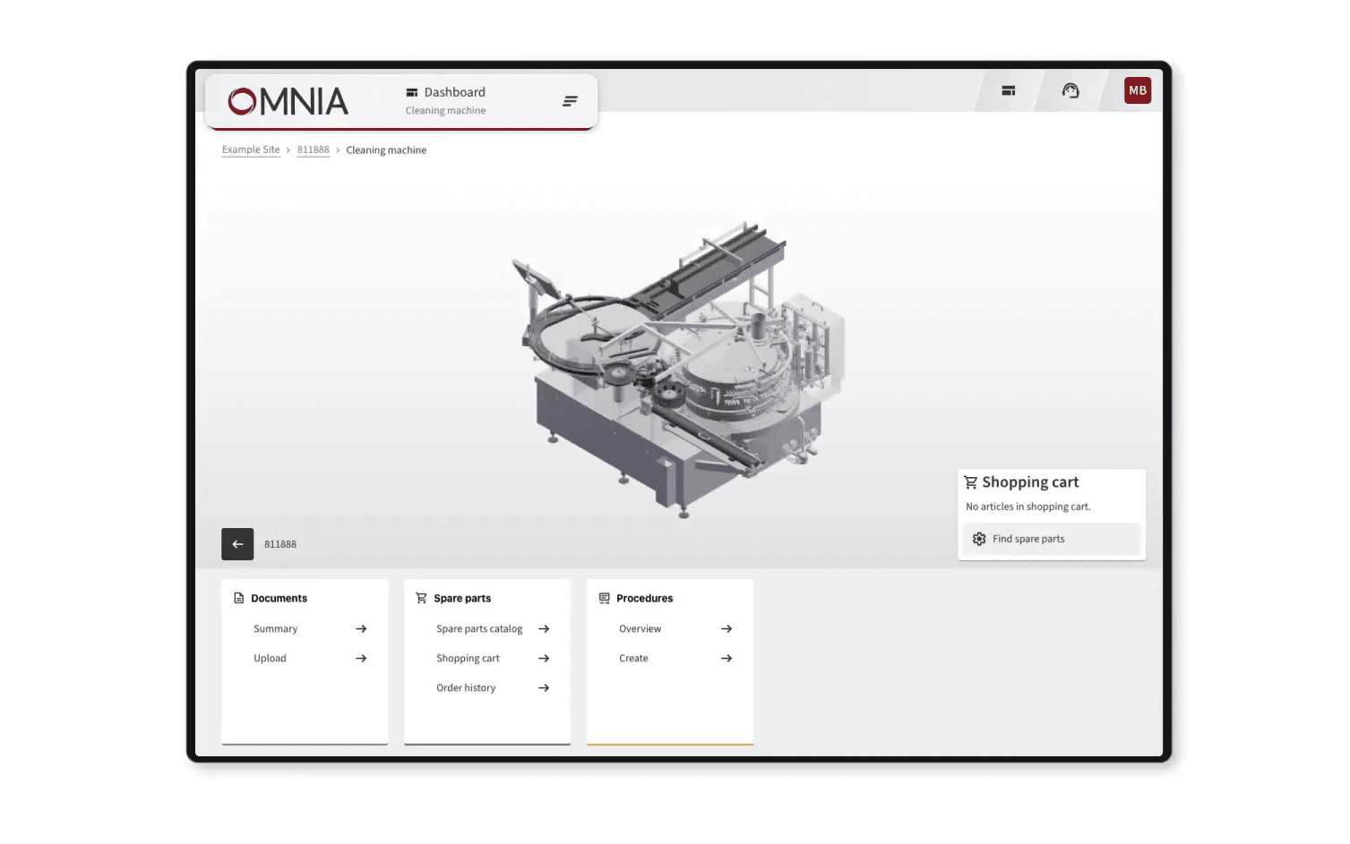 - Interaktiver 3D-Ersatzteilkatalog: Nutzer können Ersatz- und Bauteile direkt im digitalen 3D Modell ihrer individuellen Maschine eindeutig identifizieren und in wenigen Schritten bestellen. So werden Fehler und eine aufwändige Kommunikation bei der Ersatzteilbeschaffung vermieden.
