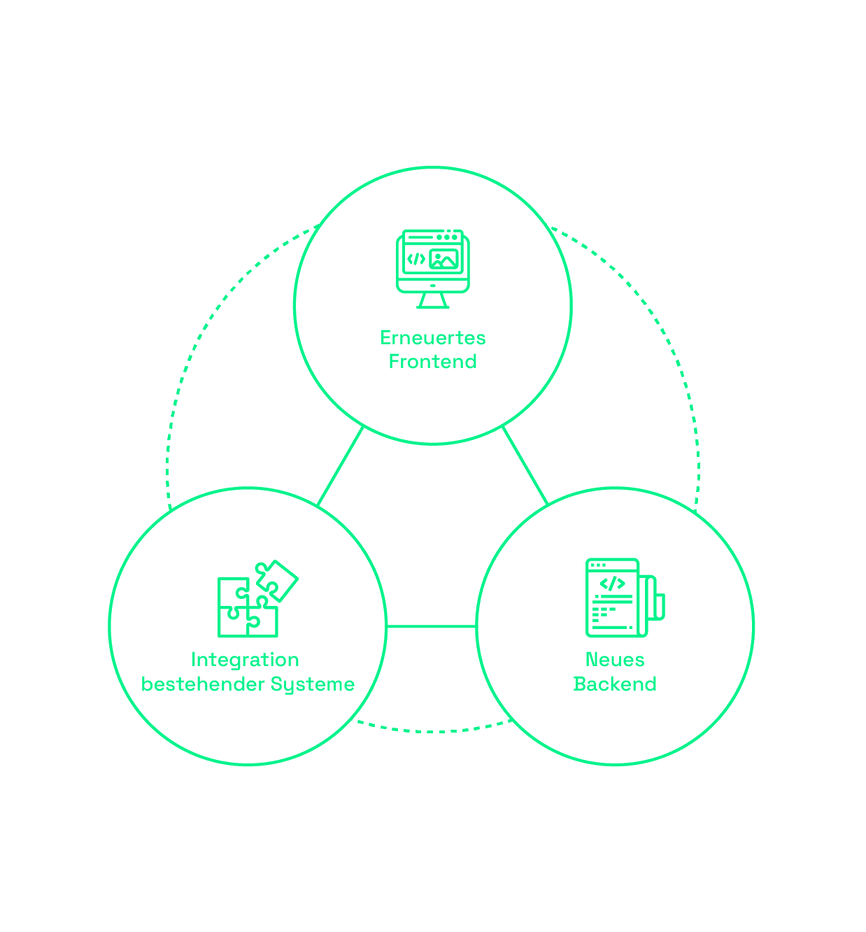 Dieser Core bildet die Schnittstelle zu einer Vielzahl von erneuerten Web-Frontends für Anwendungen im gesamten Logistikprozess, die individuell auf die verschiedenen Anwendungsfälle zugeschnitten sind, sowie zu verschiedenen bestehenden Systemen und Prozessen.