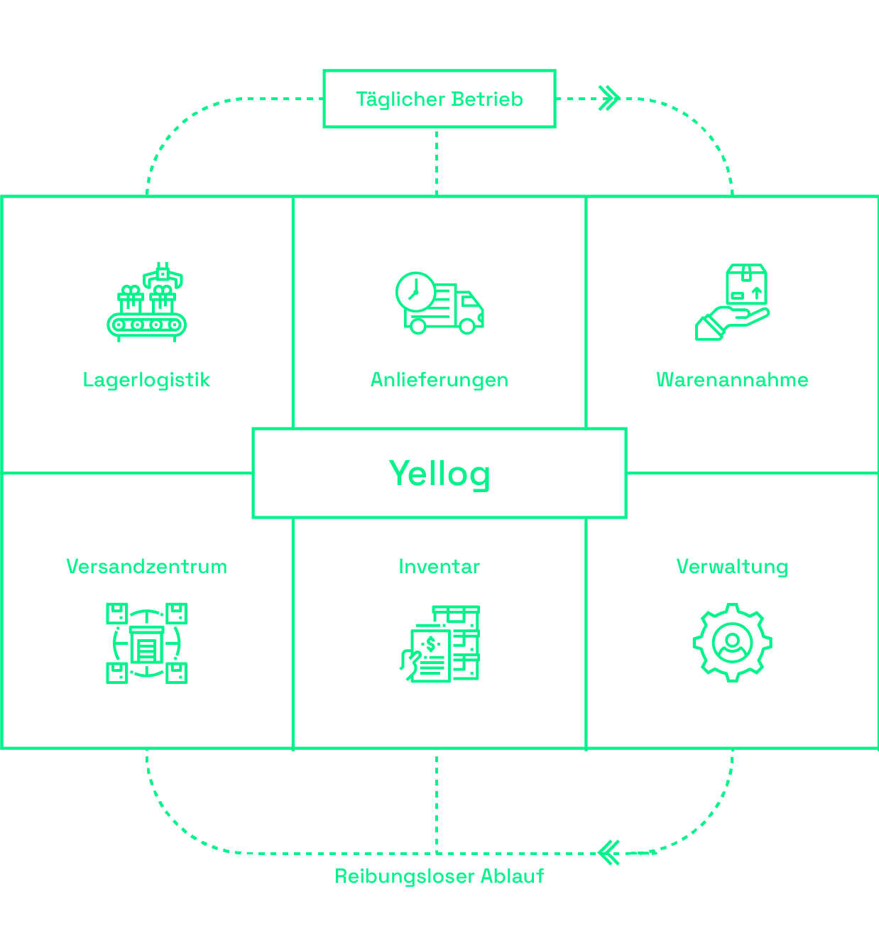 Die neue Anwendung Yellog übernimmt die Funktionen der alten Systeme und erweitert sie um alle logistischen Anforderungen: vom Versand und der Verpackung über die Warenannahme bis hin zur Lagerverwaltung und vieles mehr.