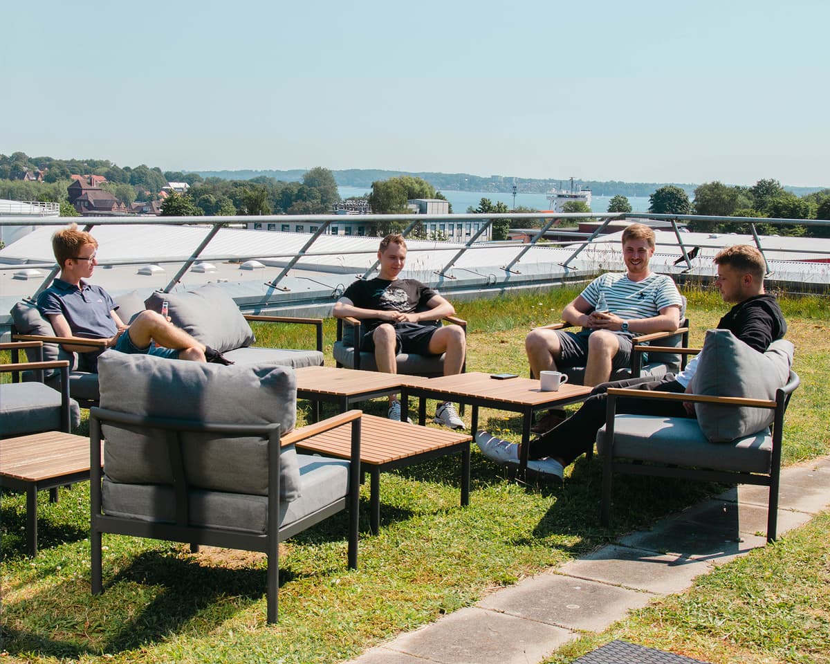 Our office in Kiel has a large roof terrace. A great place to enjoy the sun during your lunchbreak or for an after work barbeque.