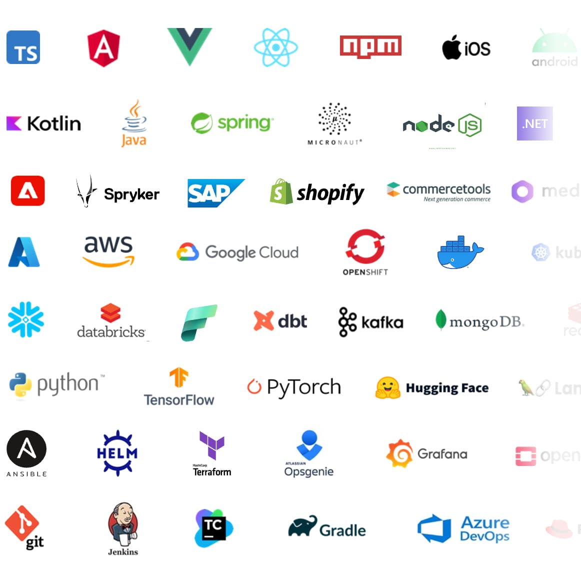 Kotlin, Java, Spring, Micronaut, node js, .NET, php, Spring Boot, Quarkus, .NET, Nestjs, Fastify