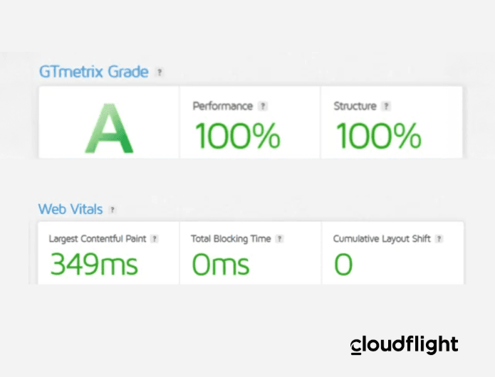 - Dramatic improvement in website performance: GT Metrix performance scores rose from D to A