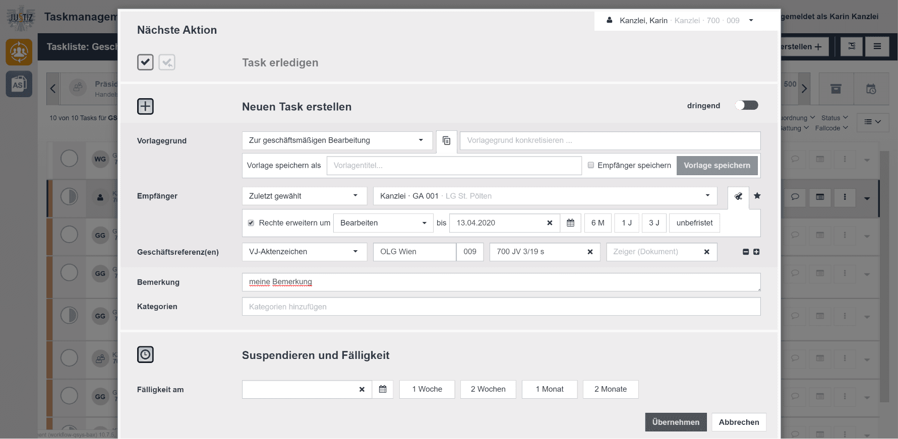 The digital justice workspace forms the bridge between the analog and the digital world and guides the user through all the steps of the digitalized lawsuit.