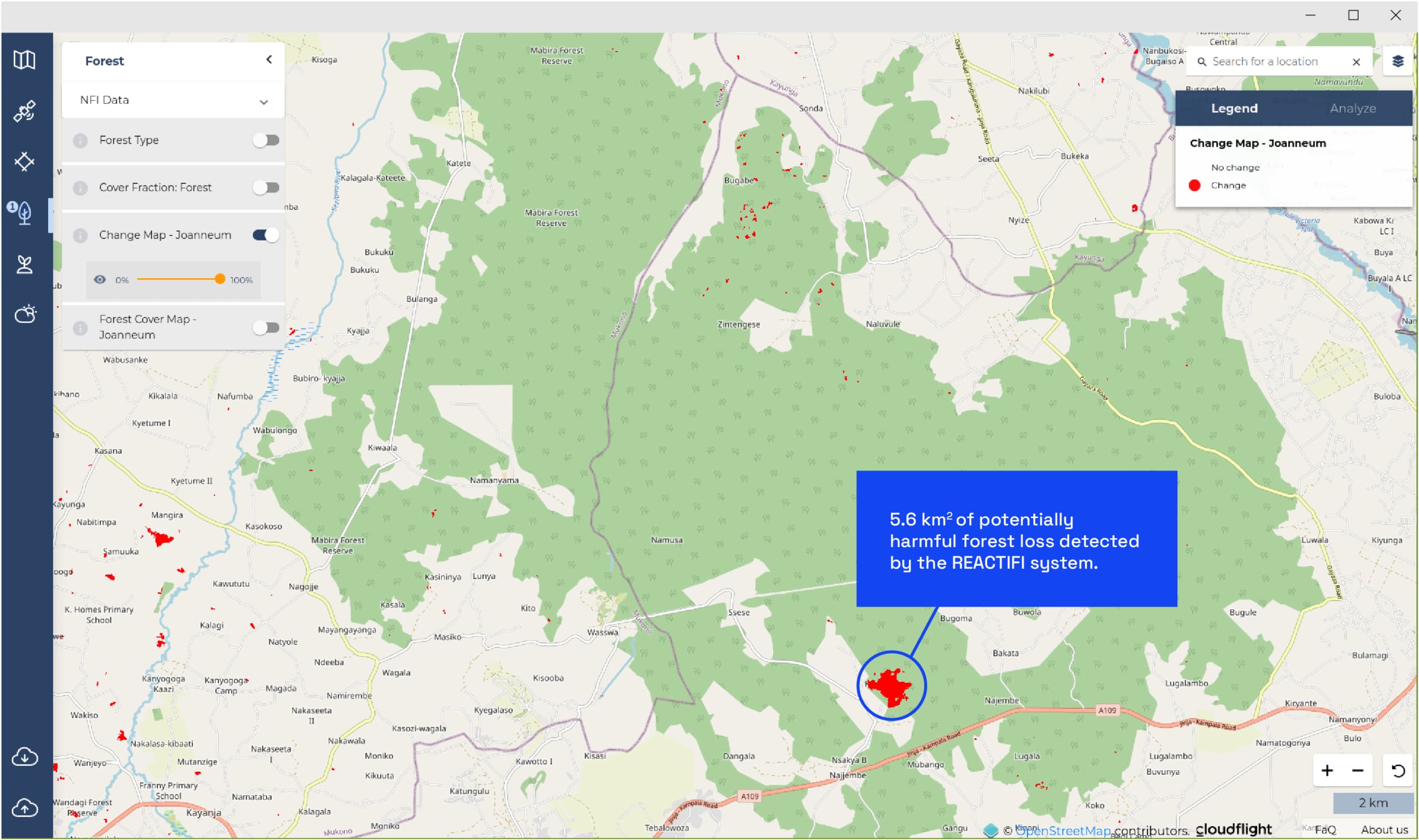 REACTIFI will develop a web-based forest inventory (FI) service tailored to REDD+ Monitoring, Reporting and Verification (MRV) in Central and East Africa. It will provide information about forest status, deforestation and degradation, at a TIER L2-3 using innovative methods on Copernicus Sentinel-1 & -2, airborne and terrestrial data. It will provide forest managers, administration, and practitioners of national forest monitoring systems with a set of tools that gives them access to beyond-state-of-the-art methodology and technology to support their regional and national MRV processes.